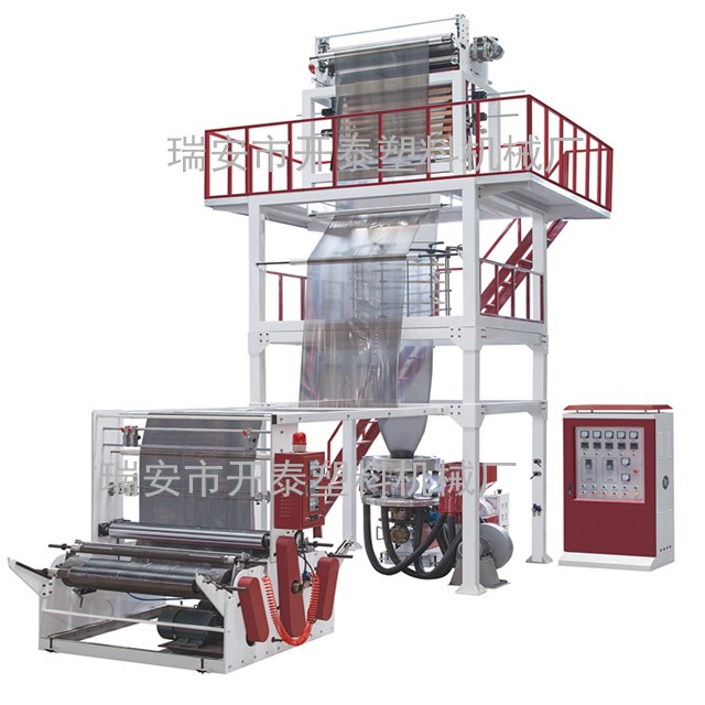 塑料薄膜吹膜机适用于吹制HDPE/LDPE/LLDPE薄膜,机器带有旋转模头和双收卷。